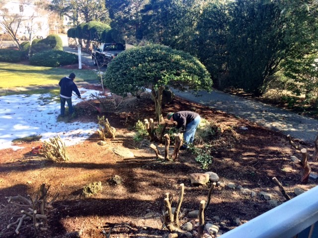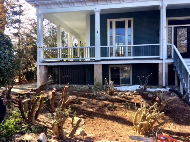 It’s always a little scary to make a big change and gutting our front gardens to create new gardens was certainly scary for us. However, the time had come as the shrubs in the front had been there for so many years that the top of the shrubs were up to the banister of the veranda (6 feet above ground). In addition the landscape work to trim the bushes each year was tedious and the flowering bushes were becoming more and more sticklike with less blooms.
